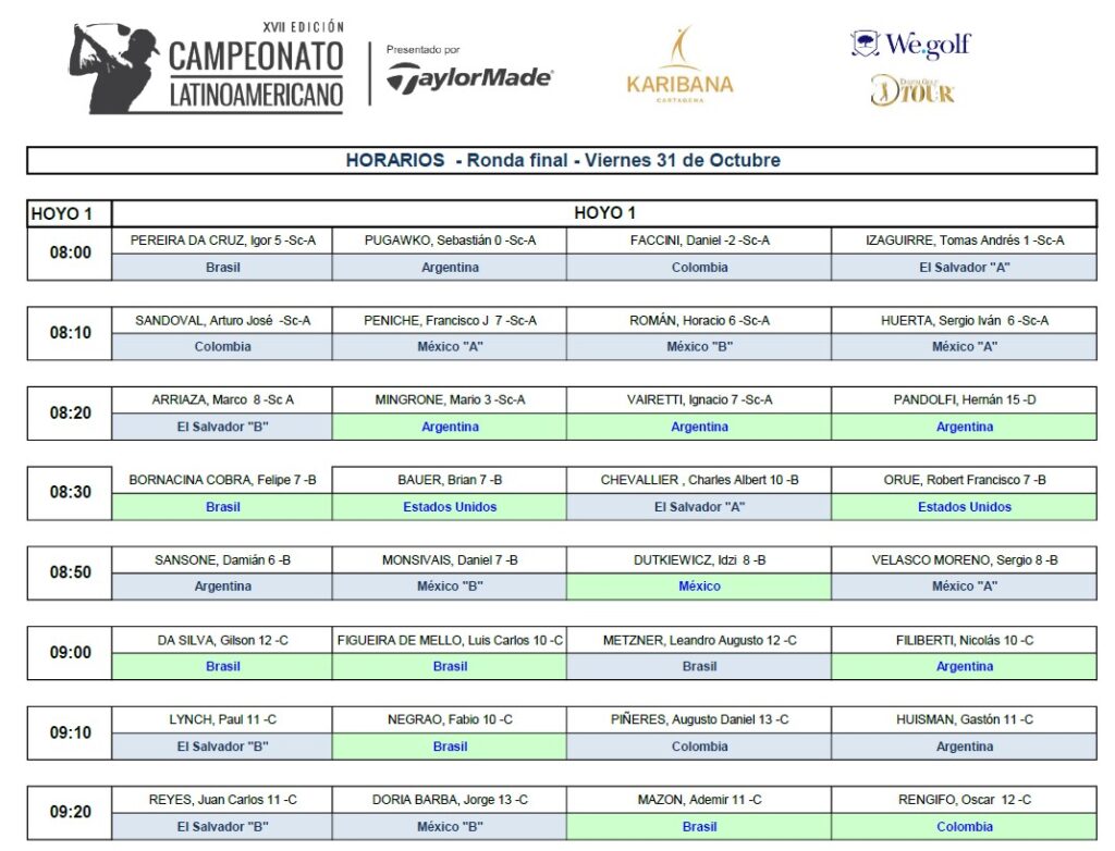Comenzarán a las 08:00 hs. y serán en simultáneo por el hoyo 1 y por el 10.